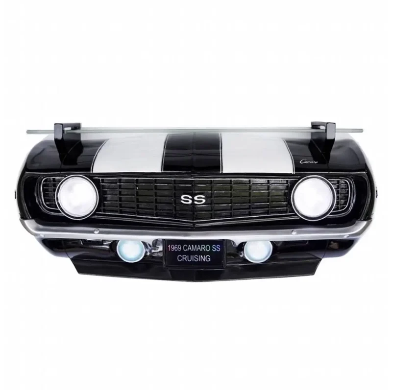 Denne klassiske Chevroleten er en 1969 Camaro SS støpt i harpiks og håndmalt. En hylle i herdet glass sitter på toppen av den velkjente fronten, og ja, denne babyen har til og med fungerende lys! For en måte å vise frem favorittskattene dine på. Måler 50,5 x 20,5 x 15,5 cm og krever 3 AAA-batterier (ikke inkludert).