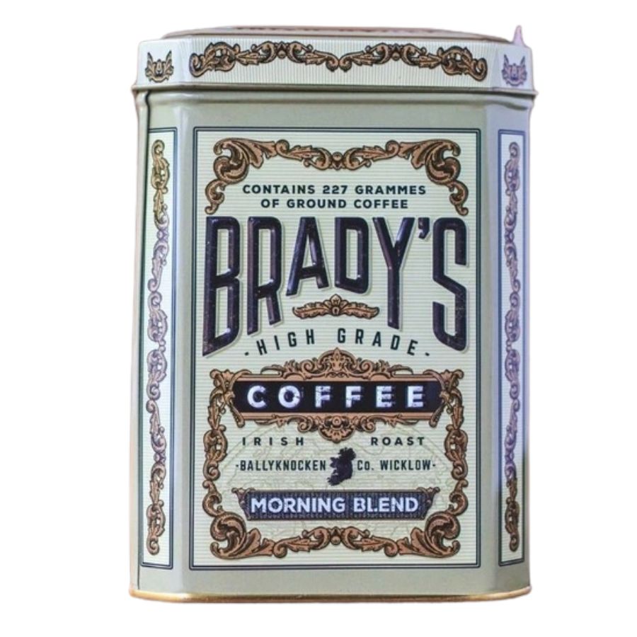Brady’s Morning Blend 227g Ground Coffee presented within a beautifully embossed tin. Our Morning Blend Coffee is a full bodied coffee that is smooth enough for your first cup of the day and at the same time strong enough to kick start your morning. Our Morning Coffee is made up of Direct Trade speciality grade Brazilian Coffee. Hand roasted in small batches in our Roastery in County Wicklow, Ireland.