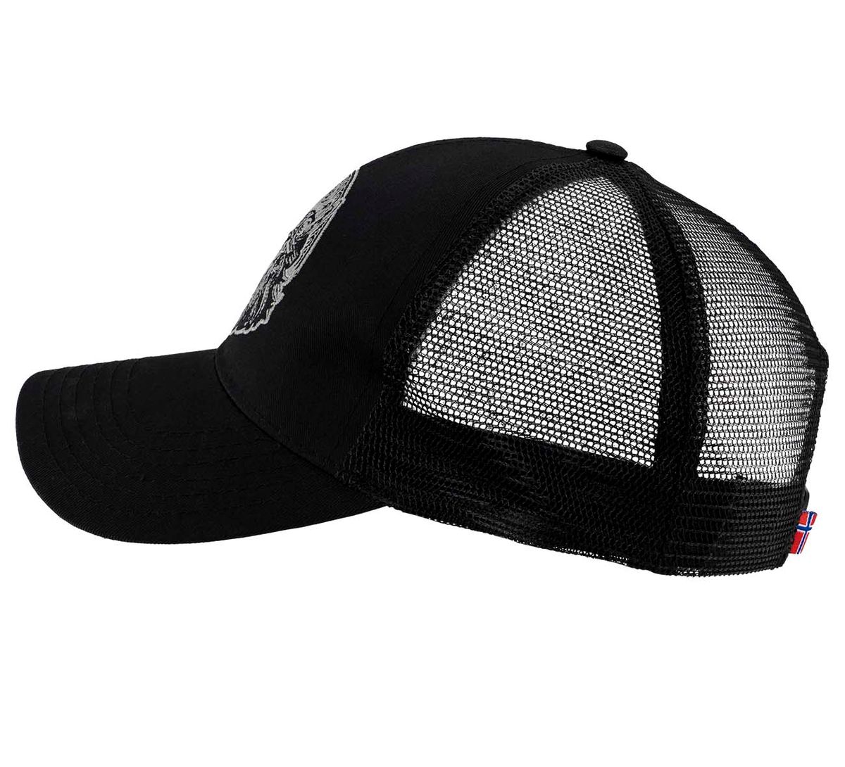 Denne stilige svarte truckercapsen har et stilig brodert emblem av Viking Norway, som gir et kraftfullt og legendarisk preg. Laget av 100% bomull for maksimal komfort, med pustende polyesternetting bak for god ventilasjon. Den er både praktisk og trendy, og passer perfekt til utendørsaktiviteter og hverdagsbruk.
