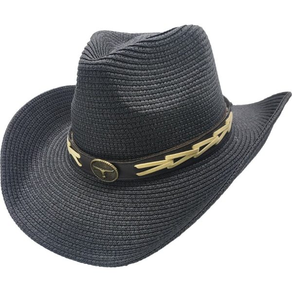 Denne cowboyhatten er laget av papirstrå, perfekt for sommerbruk. Det klassiske designet holder deg kjølig og stilig hele sesongen. Hattens lette og pustende materiale gjør den ideell for utendørsaktiviteter, mens den brede bremmen gir beskyttelse mot solen. Gjør deg klar til å slippe løs din indre cowboy!