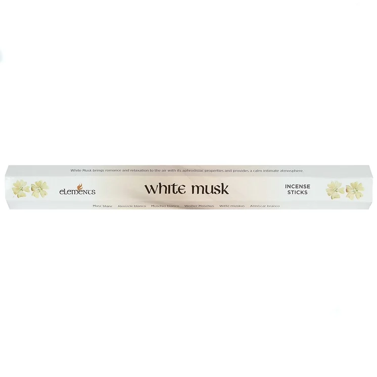Pakker med røkelsespinner med hvit muskduft. Hver pakke inneholder 20 røkelsespinner.