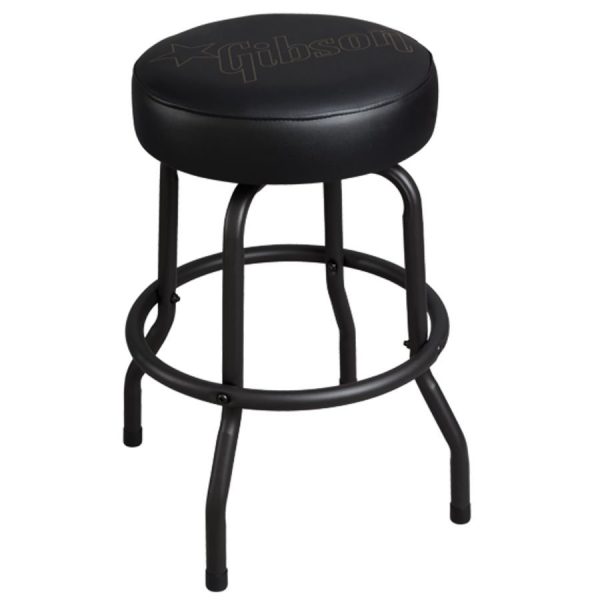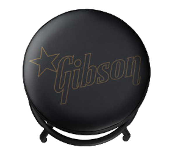 This 24″ high playing stool has a swiveling vinyl seat that is padded for comfort and emblazoned with the Gibson Star logo. The classic barstool-style tubular steel legs are matte black, and a foot ring is included for extra comfort.
