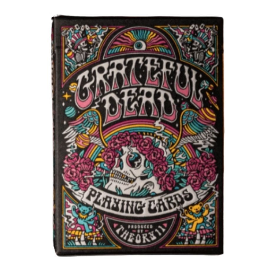 Grateful Dead ble dannet i 1965 og ble en kulturell institusjon som har eksistert i over et halvt århundre. Ved å fusjonere rock and roll, folkemusikk og jazz med avantgarde, visuelle og litterære tradisjoner, ble de et av de mest populære, varige og innflytelsesrike bandene i amerikansk historie. Eskeemballasjen er trykket med antikke letterpress-maskiner fra 1960-tallet – med seks lag med livlige farger, preget for en unik taktil følelse. Forsiden har hodeskallen og rosene i midten, med spesiallaget komposisjon rundt. Court-kortene er rett og slett fantastiske. Bruken av ikoniske logoer og maskoter fortsetter – bjørner, terrapiner og skjeletter er fremtredende fremhevet i livlige detaljer.