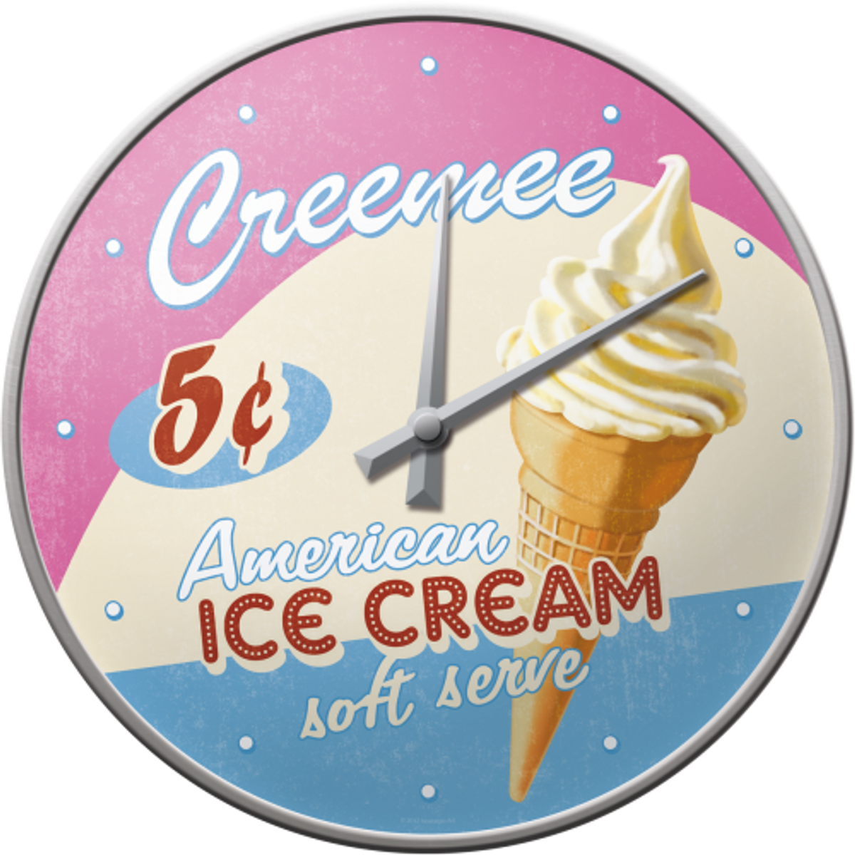 Klokke eller veggur med et robust metall kabinett og kurvet glass i front. Batteridrevet quartz urverk som bruker kun ett LR06 eller AA batteri. Sort eller sølvfarget ramme basert på design og meget stillegående urverk.