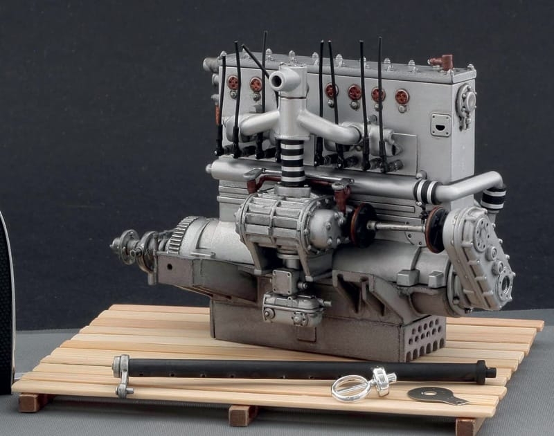 New parts – Steering wheels – Opening cowling – Highly detailed engine – Rubber tires – 2 spare wheel – Decals for 2 versions – Chromed and Photoetched parts – Screws, tubes and artificial lather – Die-cut mascking sheet – Color Instruction Sheet