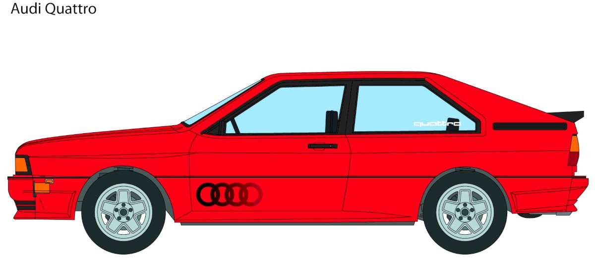 I 1980, på bilutstillingen i Genève, presenterte den tyske bilprodusenten fra Ingolstadt sin nye todørs coupé, Audi Quattro. Det italienske navnet, som ble produsert gjennom hele 1980-tallet, fremhever dens hovedtrekk: firehjulsdrift. På den tiden var firehjulsdrift på et kjøretøy som hadde som mål å generere høye salgstall en virkelig viktig innovasjon. «Quattro» garanterte god ytelse kombinert med utmerket grep på alle typer underlag. Den langsgående motoren foran kunne levere merkbar ytelse. En konkurranseversjon ble også laget, som debuterte i rally-VM i 1981 og oppnådde gode resultater. Suksessen til «Quattro» fortsetter den dag i dag, så mye at det italienske navnet har blitt et ekte «merke» som identifiserer hele den nyeste serien av Audi firehjulsdrevne biler.
