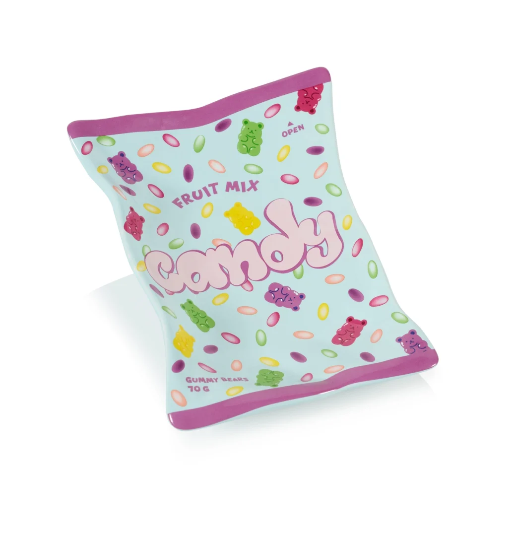 Laget av førsteklasses keramikk, etterligner dette brettet utseendet til en klassisk godteripose med en glatt, blank overflate som gir et snev av moro og eleganse til ethvert rom.