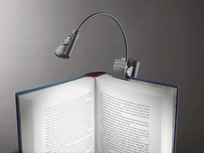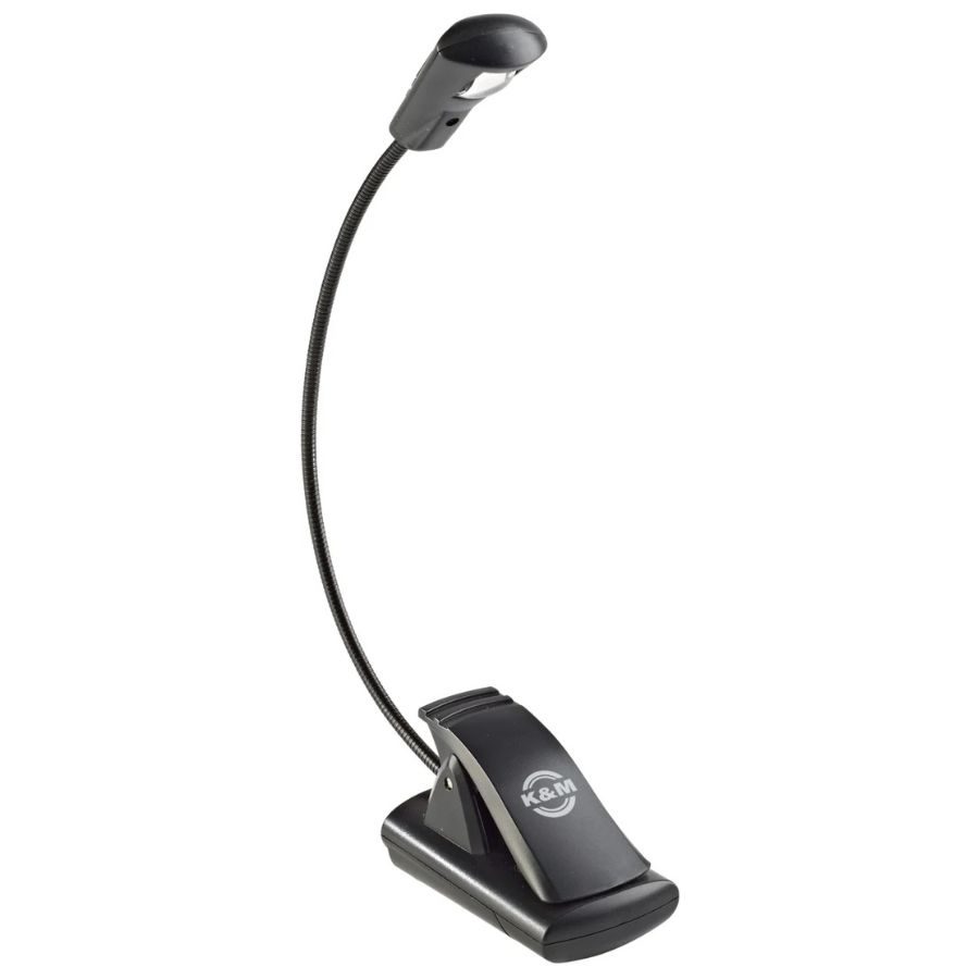 Denne batteridrevne LED-lampen drives av tre AAA-batterier og kan enkelt festes på materiale med en tykkelse på opptil 25 mm eller plasseres fritt på en bordplate. Den er perfekt for bruk med notestativ eller på et instrument, men fungerer like godt når du vil lese i mørket ved å feste den på en bok.