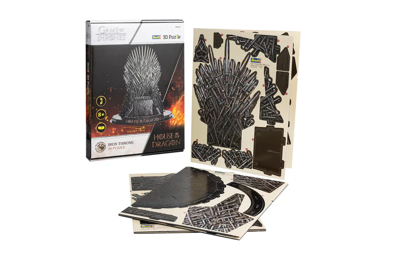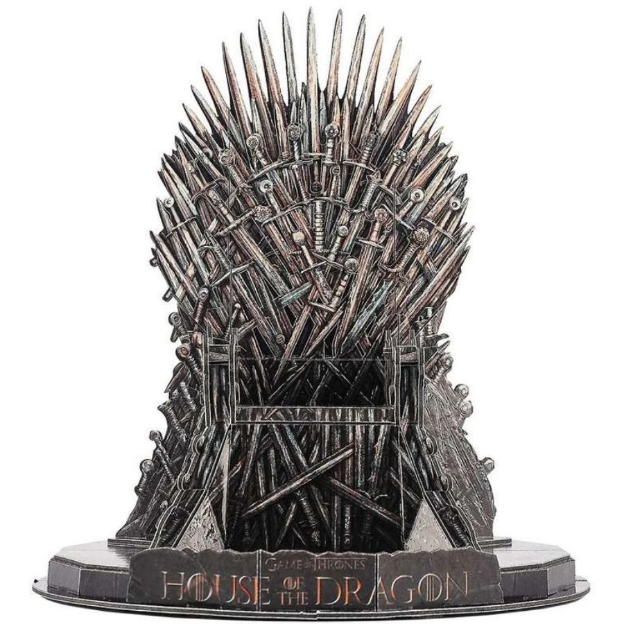 Discover the heart of the power in Westeros with our detailed 3D puzzle of the Iron Throne from the HBO series «House of the Dragon». This precisely reproduced model brings the legendary throne, composed of the swords of the fallen, directly into their home. With an impressive number of parts of 93, a length of 250 mm, a height of 220 mm and a width of 150 mm, this puzzle offers a captivating and worthwhile challenge for fans and collectors.