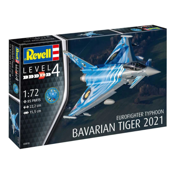 Byggesett med 2,25 Eurofighter Typhoon med det umiskjennelige «Bavarian Tiger 2021»-designet.