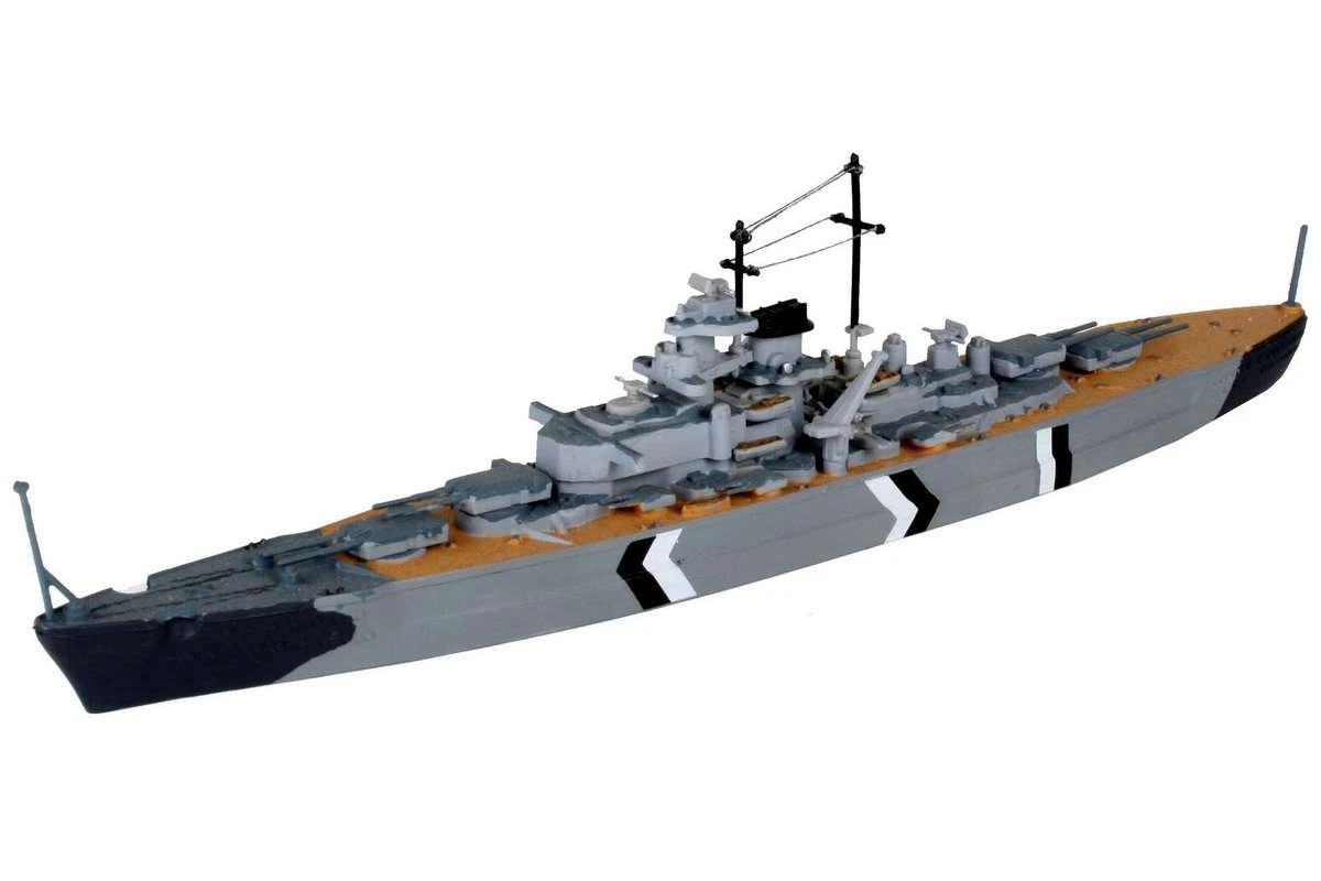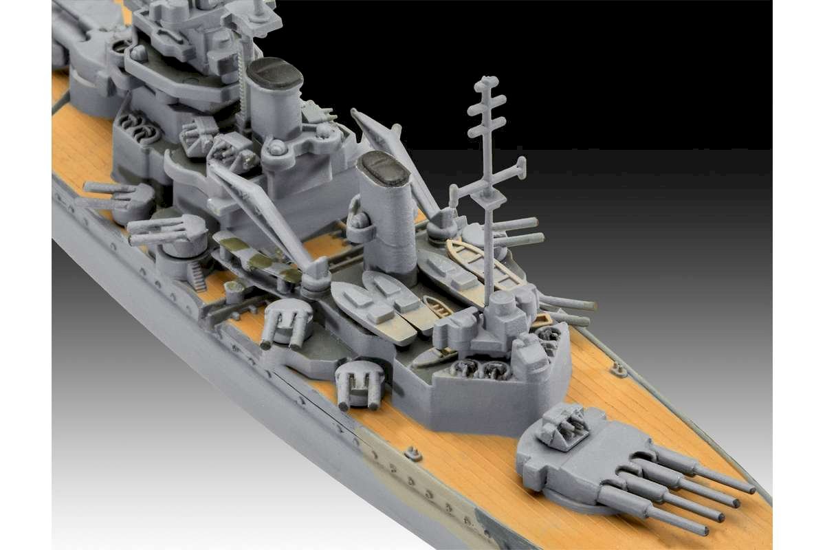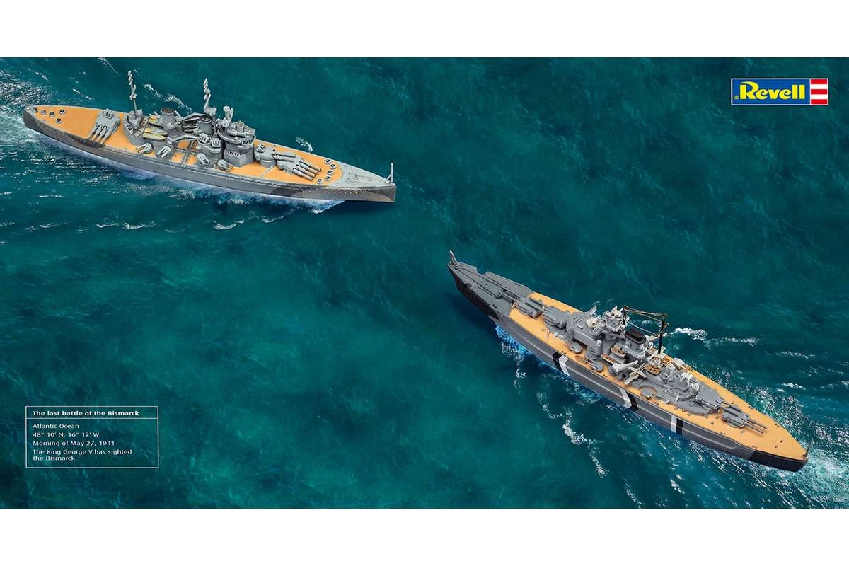 Det siste slaget om Bismarck. I 1941 møttes to giganter i Atlanterhavet – HMS King George V og Bismarck. – Settet inneholder sett med begge slagskipene. – 2 basisfarger, lim og pensler – samt en plakatbase for å gjenskape sjøslaget