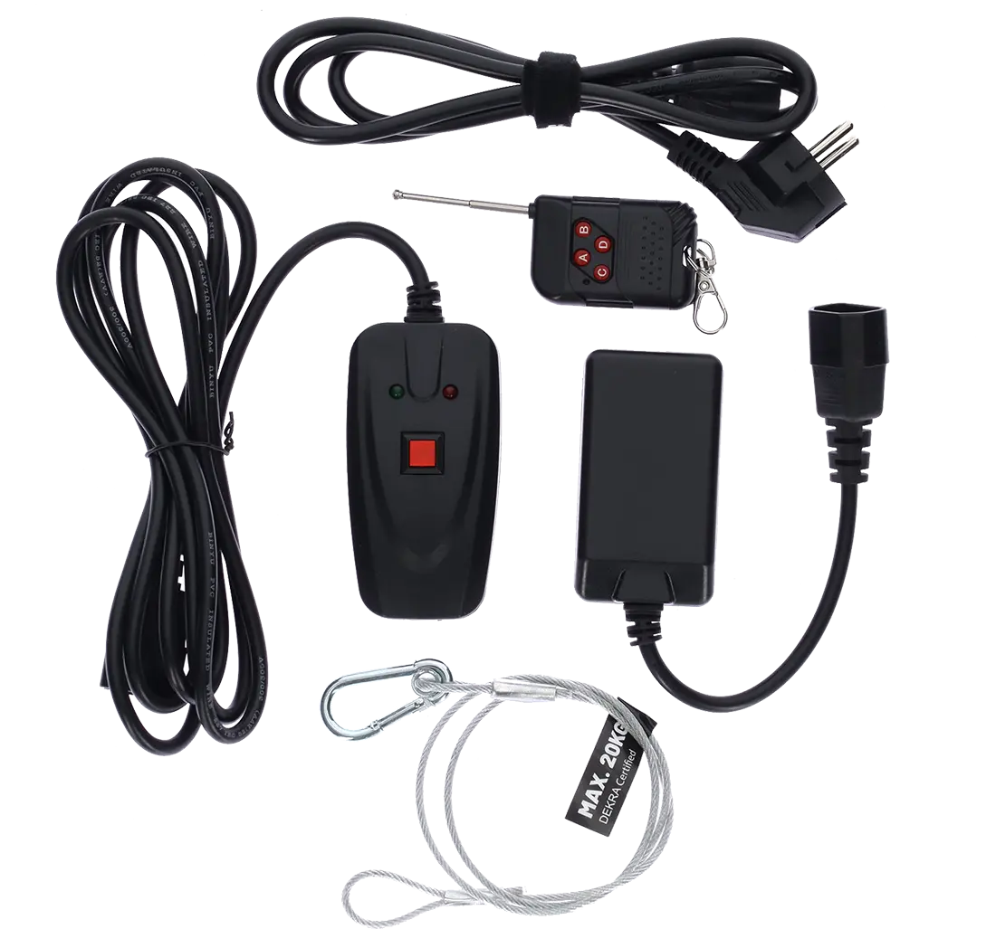 The S1000 is designed to be used by both amateurs and experienced users. Versatile, it comes with a receiver and a wireless remote control (requiring a 23A 12V alkaline battery, included), offering great freedom of movement to trigger the smoke remotely. For more direct control, a wired remote control with a trigger button is also included, ideal for situations requiring quick and immediate action. This dual approach ensures adaptability to a variety of usage scenarios, making the S1000 accessible to both novices and more experienced users.