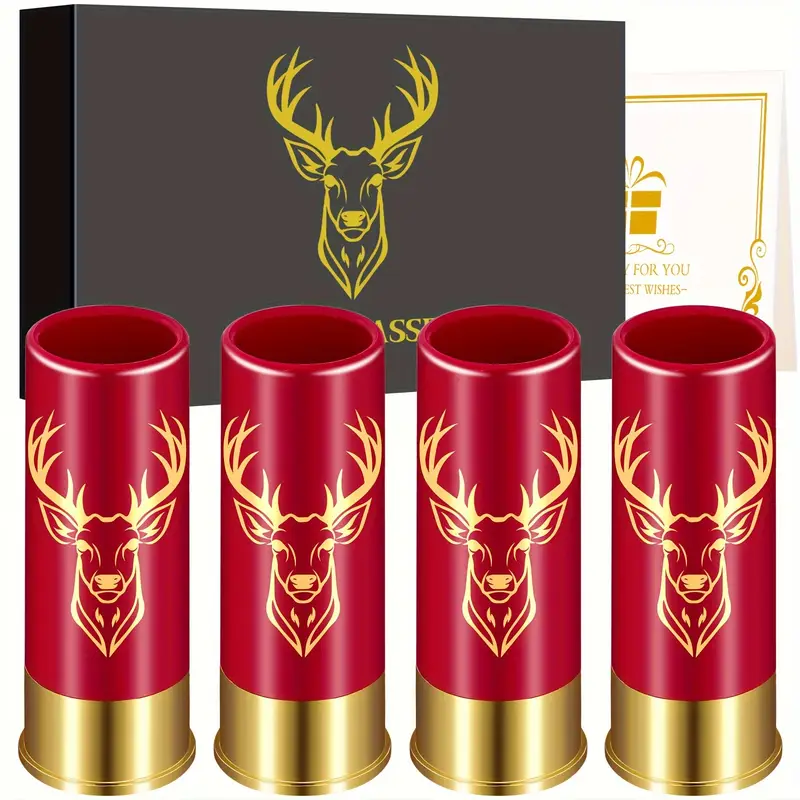 Haglepatron Shotglass 4 stk sett 12 gauge shotglass til restaurant, plastskallformede shotglass,