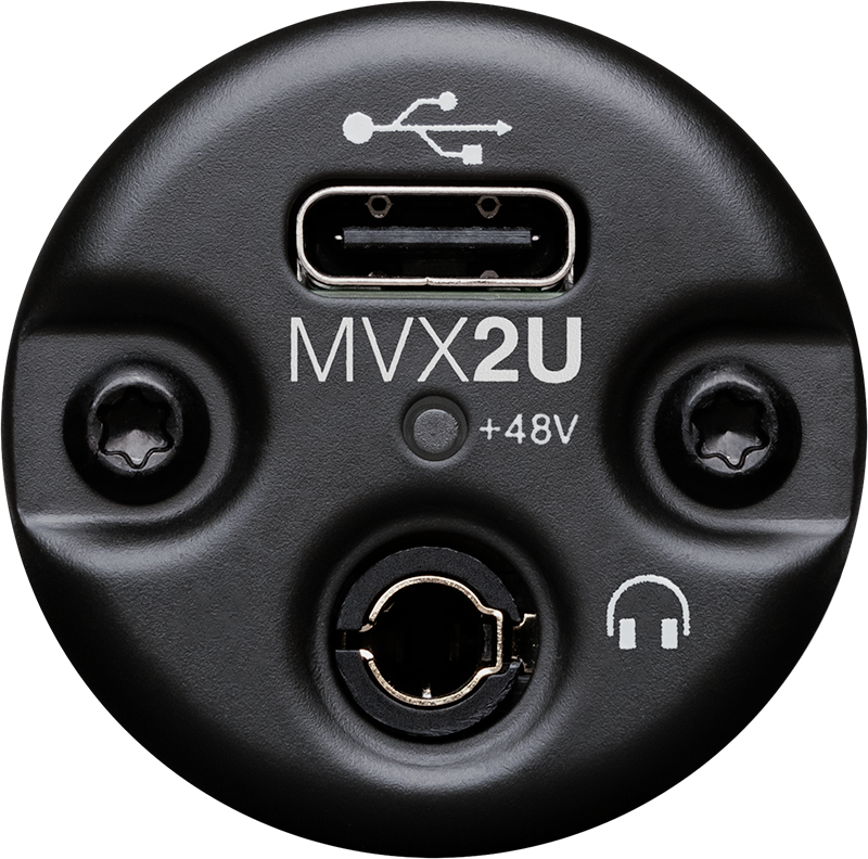 MVX2U gir opptil +60dB ren forsterkning – mer enn nok til å tilfredsstille de mest sultne dynamiske mikrofonene. Den har i tillegg 48V fantomstrøm som lar deg bruke favorittkondensatormikrofonen.