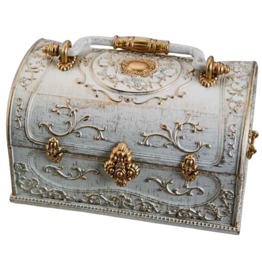 Musikalsk smykkeskrin i antikkhvitt. Når du åpner lokket, finner du et lite rom til smykkene dine og hører melodien «Für Elise»