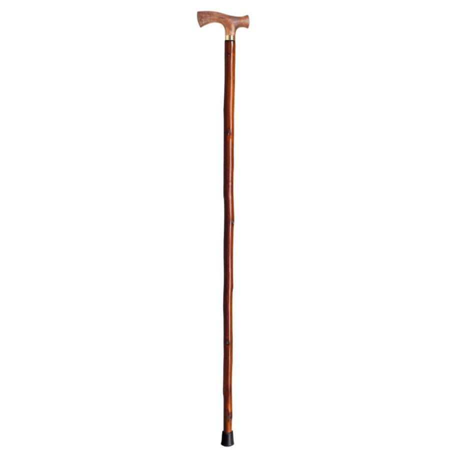 Spaserstokk laget av kastanjetre, med ergonomisk mykt plasthåndtak. Høyde på ca. 92 cm. Vekt kun 300 gram og mulighet for tilpasning.